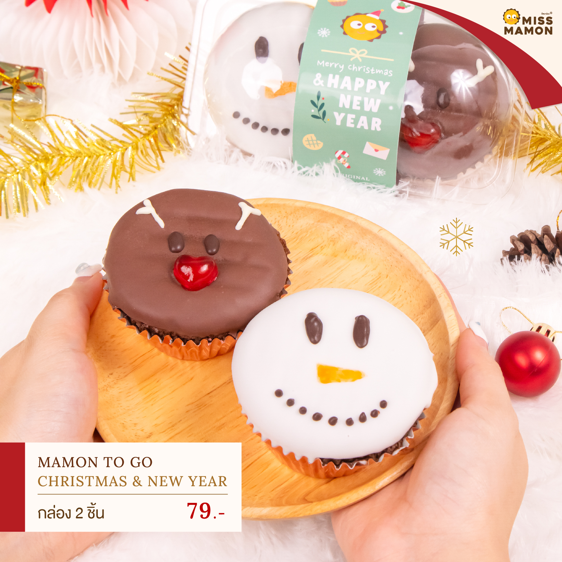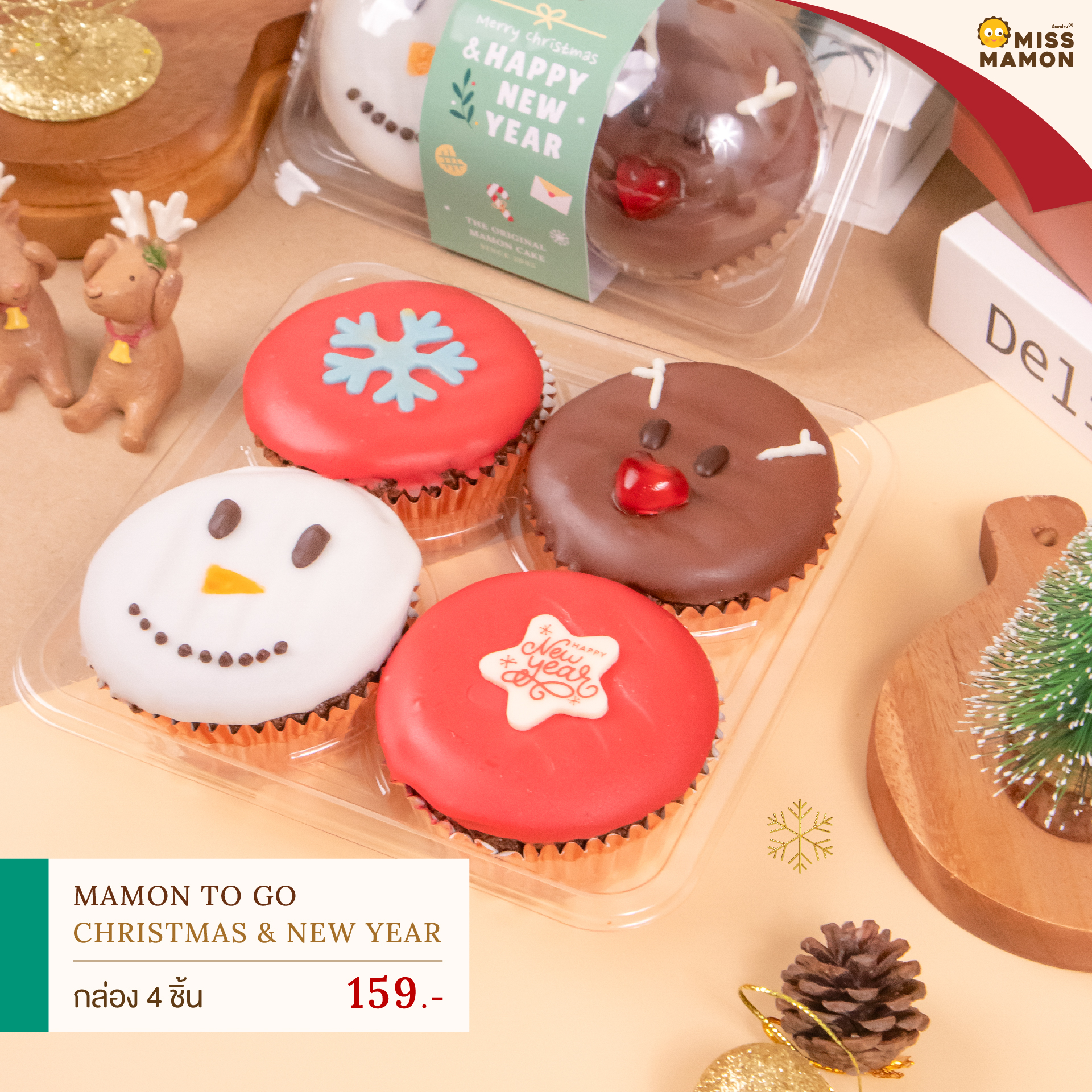 อร่อยกับขนมมาม่อนเค้กสูตรต้นตำรับเนื้อดาร์กช็อกโกแลต ตกแต่งหน้าขนมด้วยช็อกโกแลตลายสุดน่ารักเหมาะกับเทศกาลคริสต์มาสสุดๆ และยังมีให้เลือกอร่อยถึง 2 ขนาดด้วยกัน มีทั้งกล่อง 4 ชิ้นจุใจ และกล่อง 2 ชิ้นสุดน่ารัก
