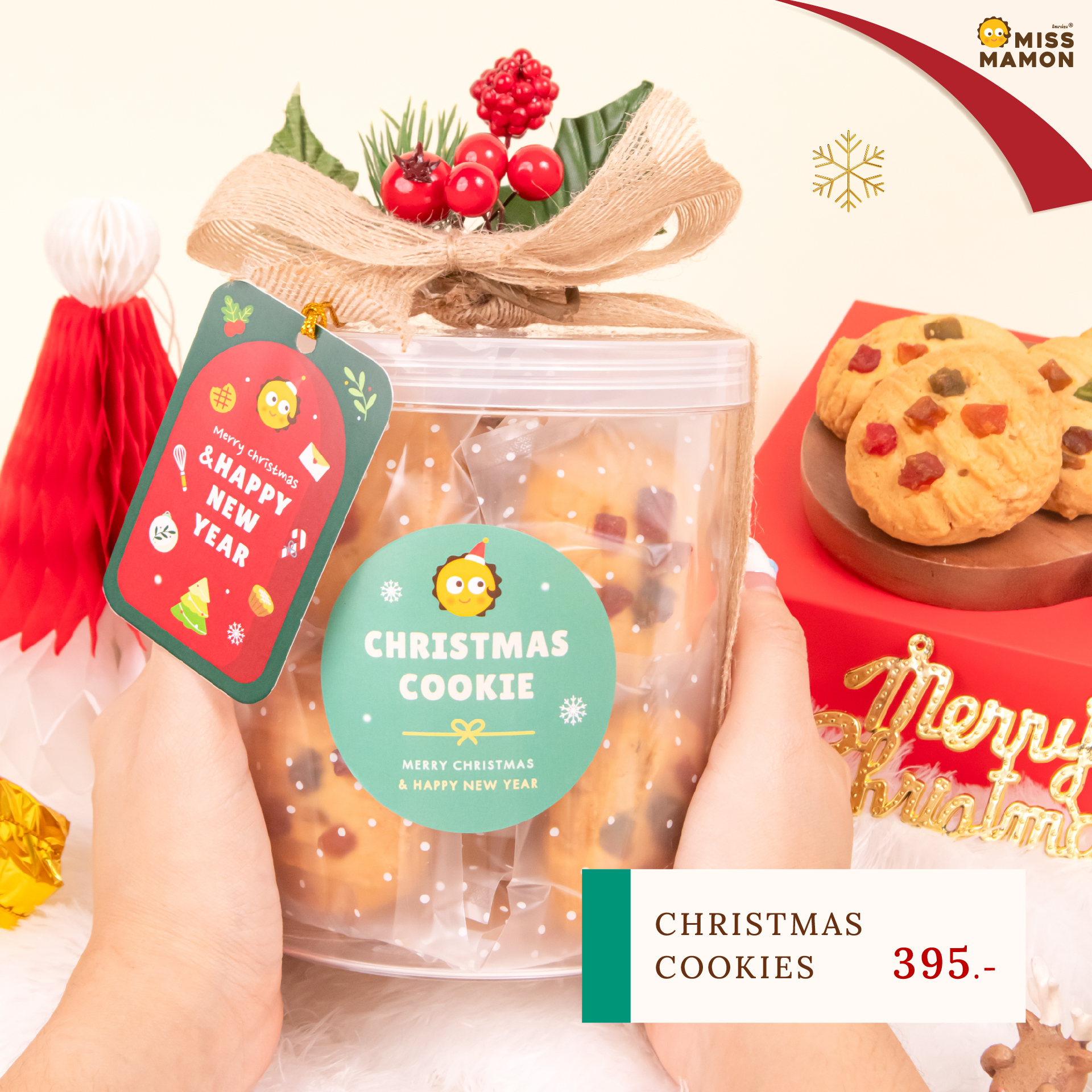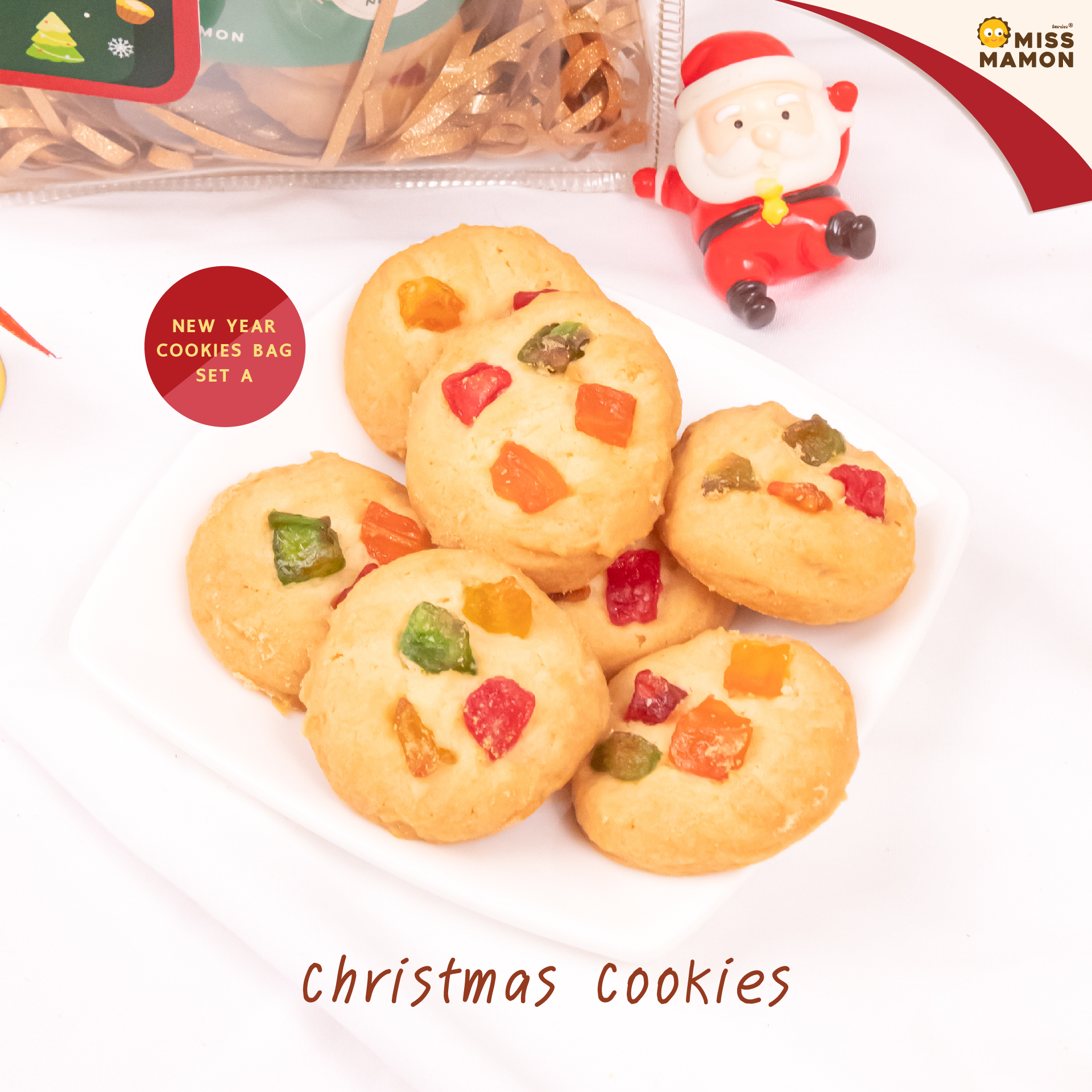 SET B : คริสตมาสคุกกี้ชิ้นใหญ่ หอมเนย โรยหน้าด้วยมิกซ์ฟรุ๊ตคริสต์มาสหลากสี หวานน้อย