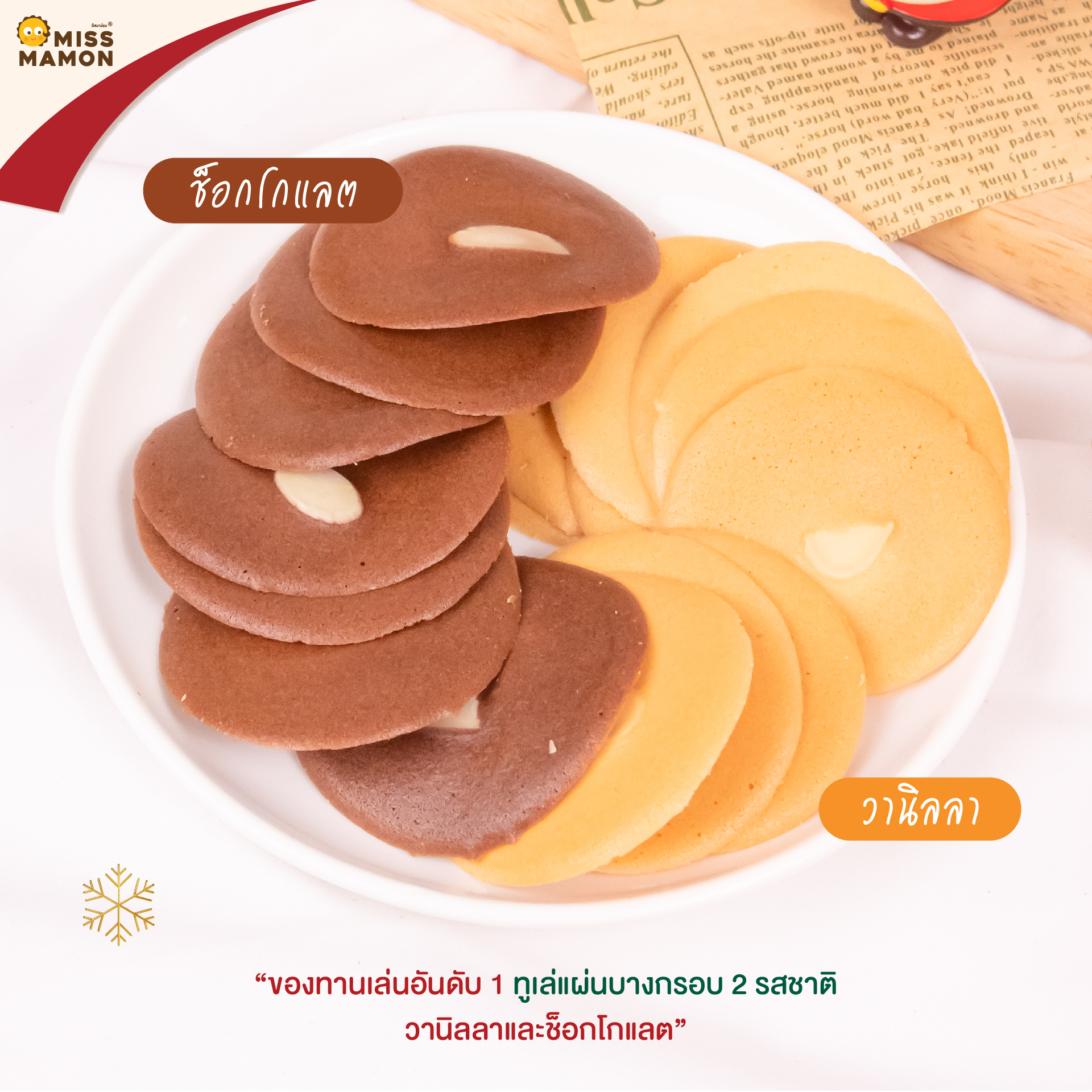 ทูเล่ทูโทนแผ่นบางกรอบ 2 รสชาติในกระปุกเดียว สูตรฝรั่งเศส หอมเนยสดแท้ มีให้เลือกทั้ง2ขนาด ทั้งกลางและใหญ่ ที่วางขายเพียงปีละครั้งเท่านั้น และเป็นของทานเล่นที่ขายดีอันดับ 1 ของเรา