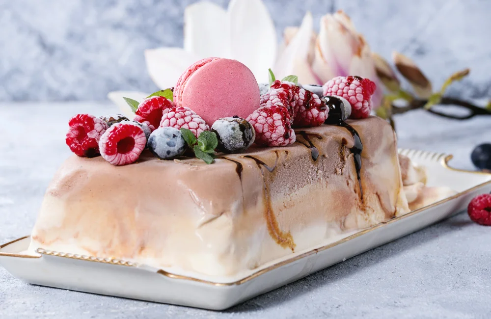ไอศกรีมเค้กเป็นการผสมผสานระหว่างเค้กและไอศกรีม โดยใช้ไอศกรีมแทนครีมสดในการสอดไส้ระหว่างชั้นของสปันจ์เค้ก