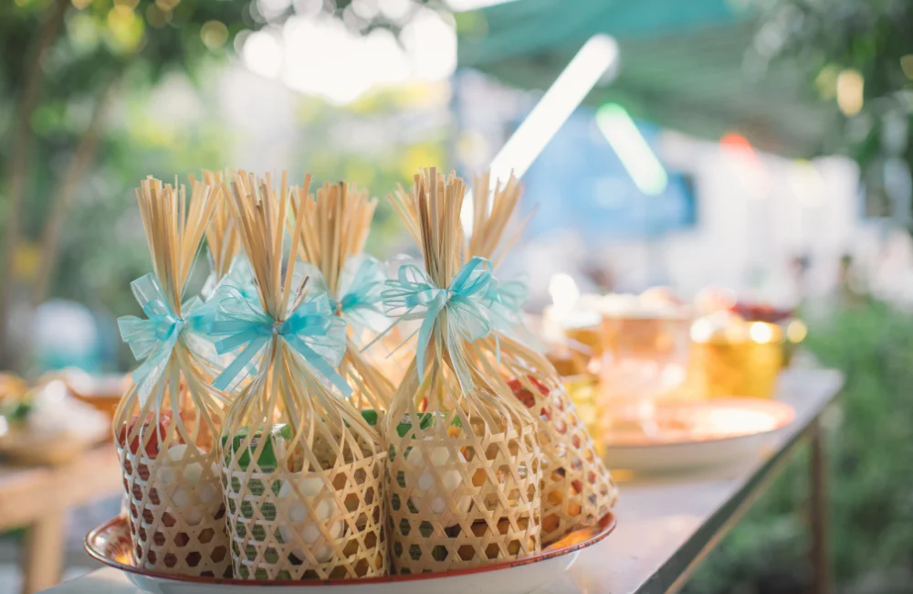 โดยคุณอาจจัดเตรียมอาหารหรือขนมเป็นชิ้นที่สะดวกต่อการแจกและรับประทานไปเลี้ยงด้วยตัวเอง เช่น ขนมมาม่อนเค้กสูตรต้นตำรับเบเกอรี่สูตรโฮมเมดทั้งขนมปังคาว - หวาน แซนวิช เค้ก ที่ใช้เนยแท้ไม่ใส่มาการีน รับรองความอร่อยกว่า 20 ปี ขนมบรรจุแยกชิ้นในแพ็กเกจ สะอาด ปลอดภัย เริ่มต้น 26 บาท/ชิ้น