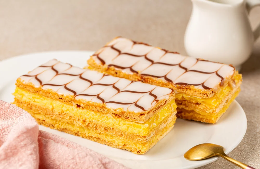 มิลล์เฟย หรือในภาษาฝรั่งเศสแปลว่า ‘พันชั้น’ เป็นขนมที่ประกอบด้วยแป้งพัฟเพสตรี้หลายชั้นสลับกับครีมพาสทิเชียร์ ความพิเศษของมิลล์เฟยอยู่ที่ความกรอบของชั้นแป้งที่ตัดกับความนุ่มเนียนของครีม มักเสิร์ฟโรยด้วยน้ำตาลไอซิ่งหรือตกแต่งด้วยผลไม้สด