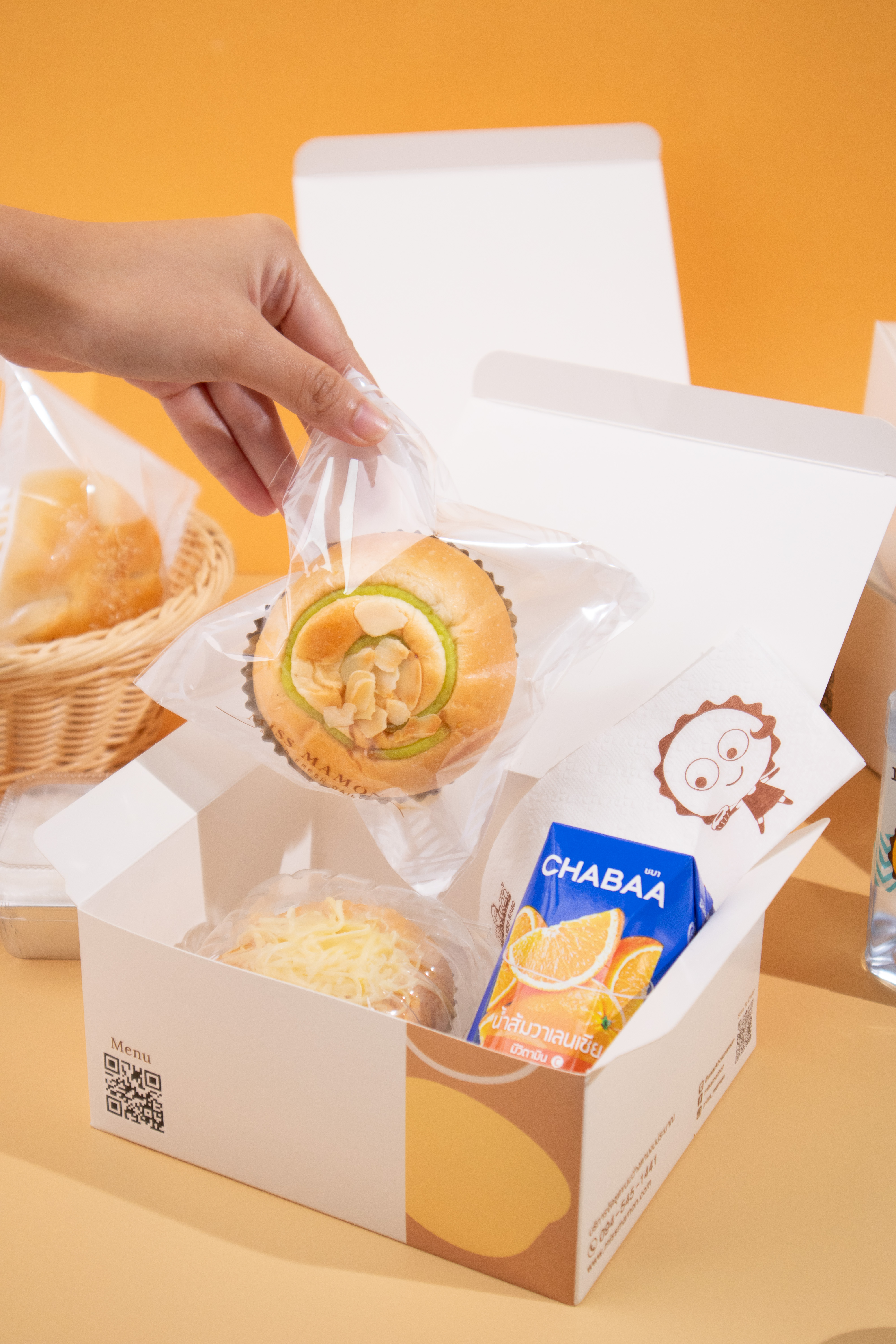 เริ่มต้นด้วย Miss Mamon ผู้ให้บริการ Snack Box ที่การันตีเรื่องความอร่อยในวงการเบเกอรี่ของไทยมาแล้วกว่า 20 ปี เมนูที่เป็นซิกเนเจอร์คือ ‘ขนมมาม่อนเค้ก’ ที่เนื้อนุ่ม ไม่ฝืดคอ ไม่เหมือนใคร นอกจากนี้ยังมีเมนูเบเกอรี่โฮมเมดที่อร่อยสดใหม่ทั้งขนมปังคาว หวาน เจ ครัวซอง พาย ทาร์ตไข่ เค้ก ให้เลือกอย่างหลากหลาย มากกว่า 150 เมนู บรรจุในบรรจุภัณฑ์ทุกชิ้น สะดวกหยิบทานแบบ Food Grade สะอาด ถูกสุขลักษณะ ราคาเริ่มต้นเพียงกล่องละ 35 บาทเท่านั้น พร้อมบริการจัดส่งถึงที่