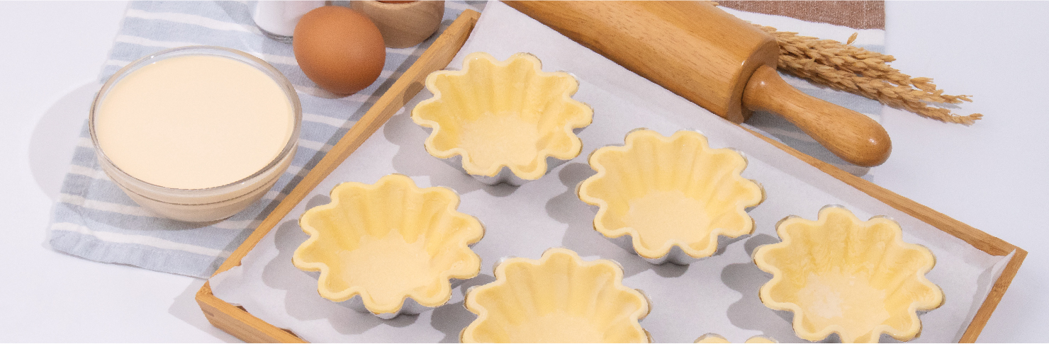 ทาร์ตไข่ฮ่องกง เปลือกทาร์ตสำเร็จรูปพร้อมอบ รีดแป้งสลับเนยพรีเมียม เรียงชั้นเป็นเลเยอร์ หอมเนยฉ่ำทุกชั้น เมื่ออบแล้วชั้นแป้งฟูบางกรอบ สีสวย โดดเด่นทั้งคุณภาพและความสะดวกในเวลาเดียวกัน ช่วยเพิ่มเมนูเรียกยอดขายและยกระดับภาพลักษณ์ร้านคุณทันที