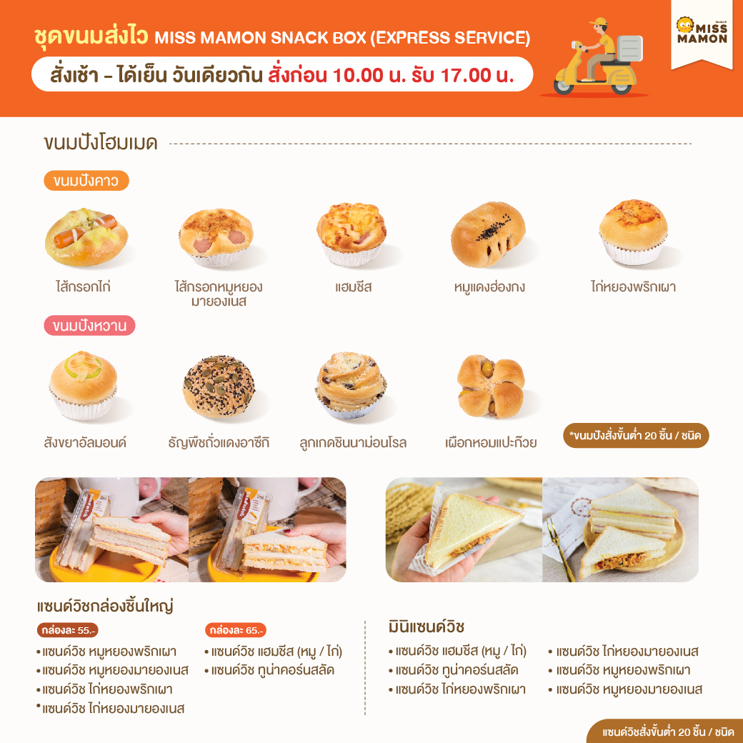 “ให้เราดูแลทุกโอกาสพิเศษของคุณ ด้วยขนมจัดเบรค Miss Mamon Snack Box Delivery”