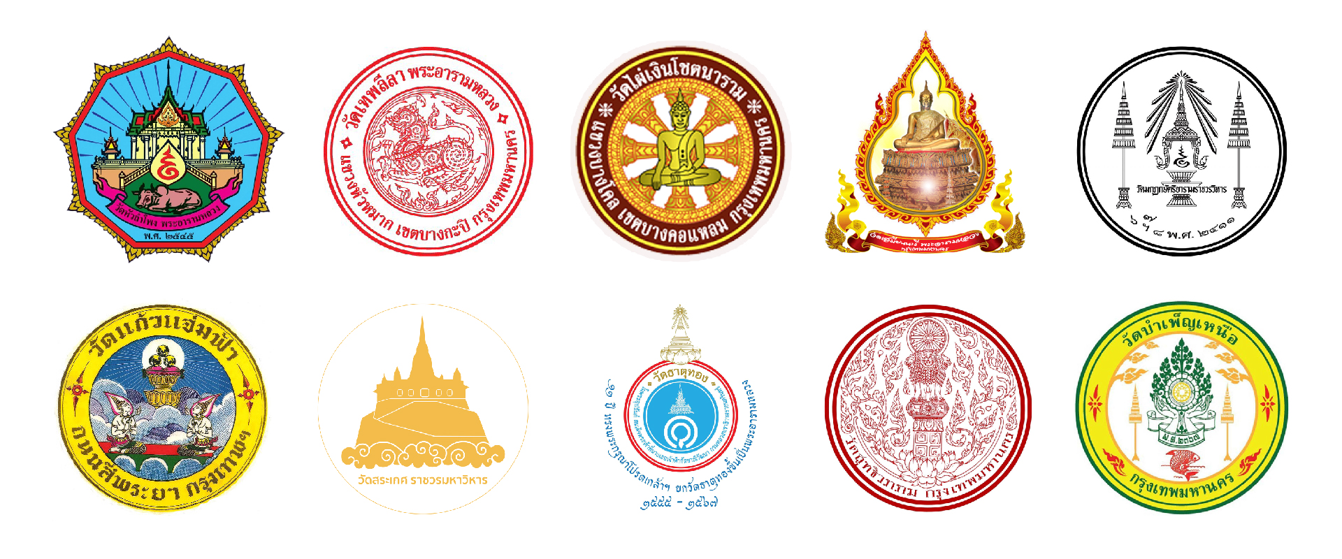 วัดสุทธิวราราม, วัดบางเตย, วัดนินสุขาราม, วัดมกุฏกษัตริยารามราชวรวิหาร, วัดหัวลำโพง พระอารามหลวง, วัดสระเกศราชวรมหาวิหาร