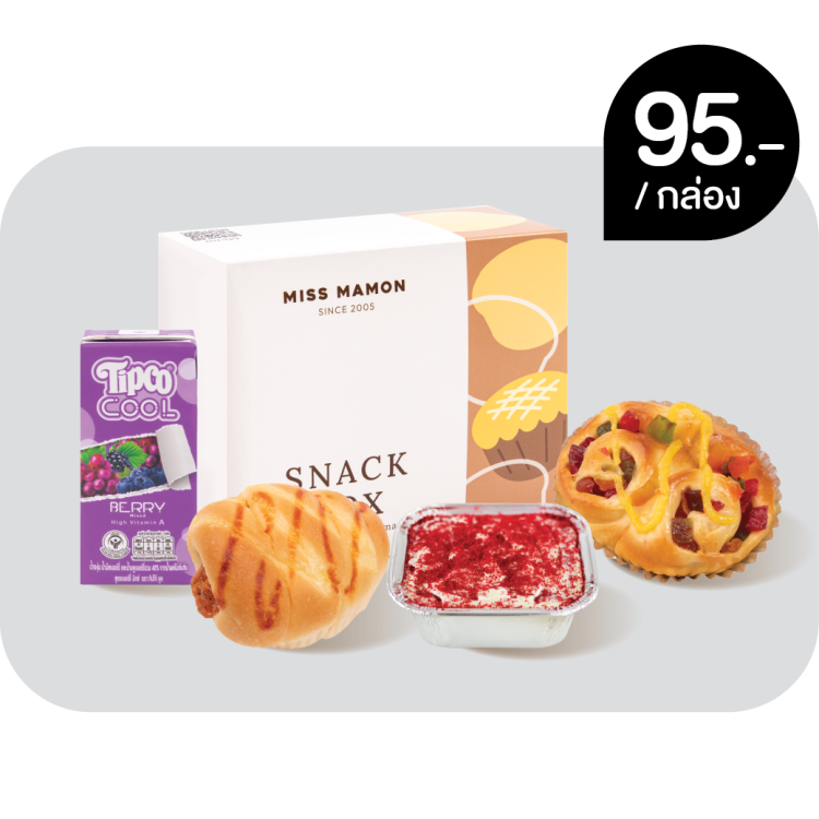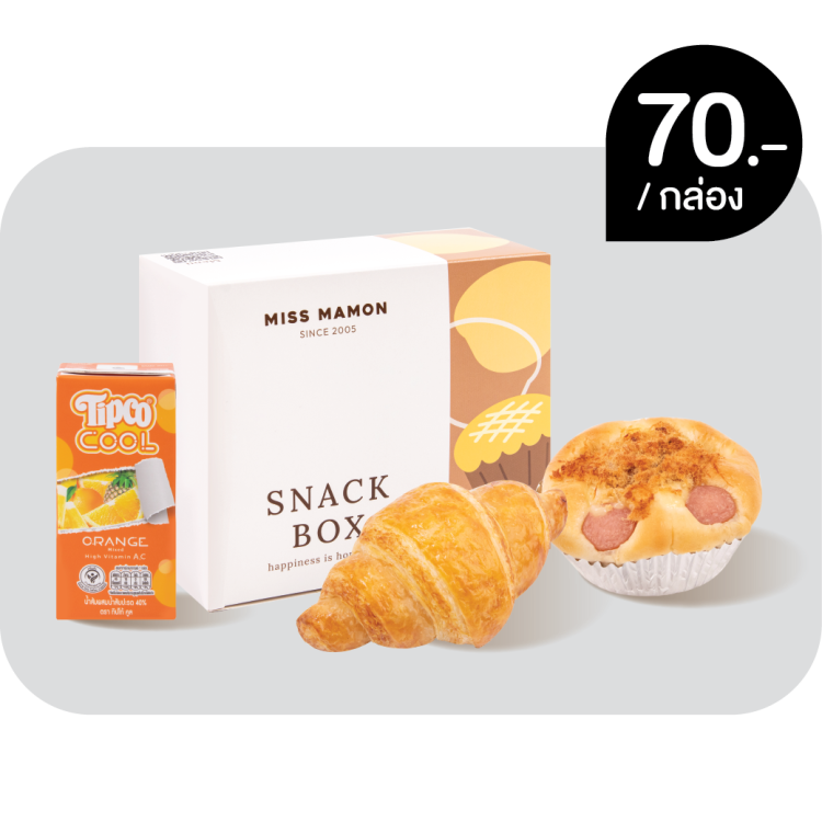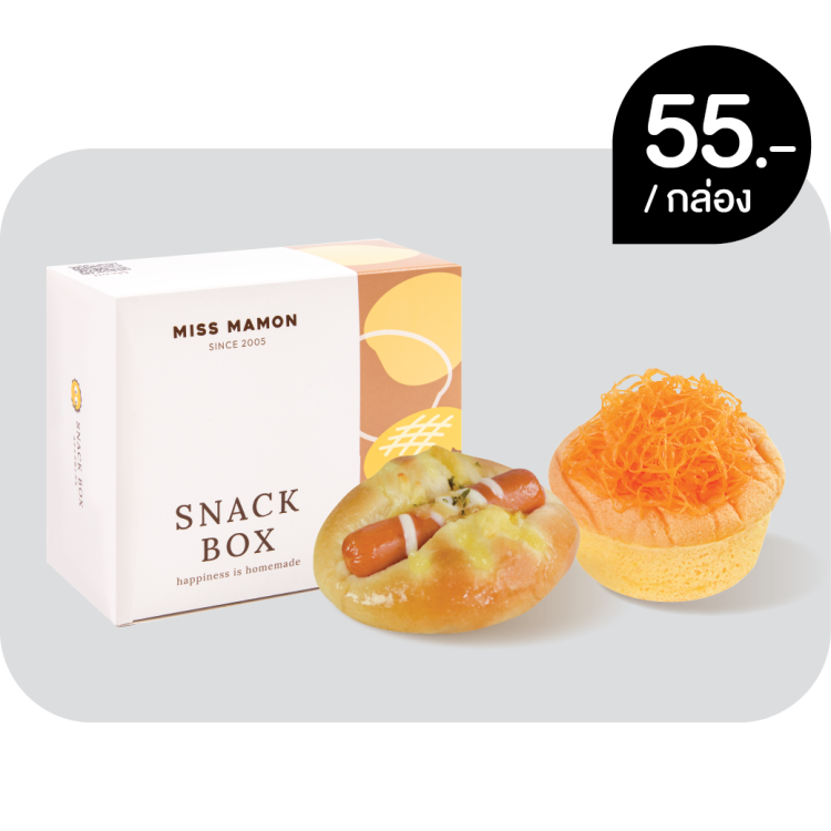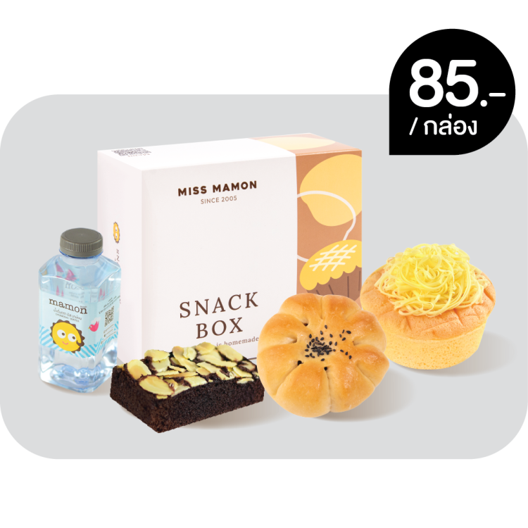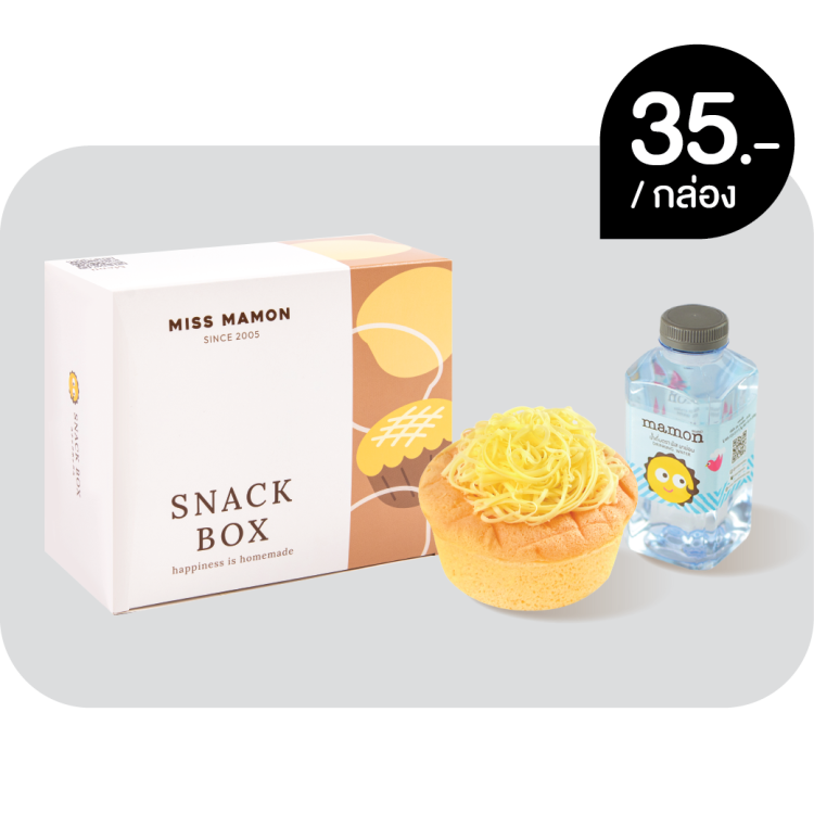 Snack Box ชุดคุ้มค่า ขนม 1 ชิ้นใหญ่พร้อมน้ำดื่มมาม่อน 1 ขวด เพียง 35 บาท/กล่อง